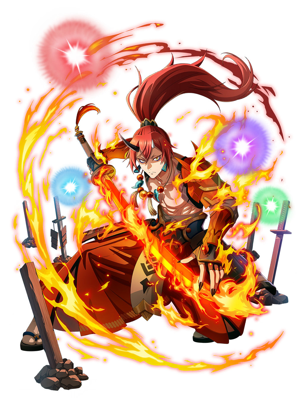 active skill 1Body and Spirit ChangingCost: 30Scarlet Burns all targets for 20% additional damage Turns 2; Does additional damage to the afflicted target corresponding to the amount of fire attack damage dealt to them Stacks; Seal critical rate, pierce rate, Aegis rate, synergy rate, and guard rate UP